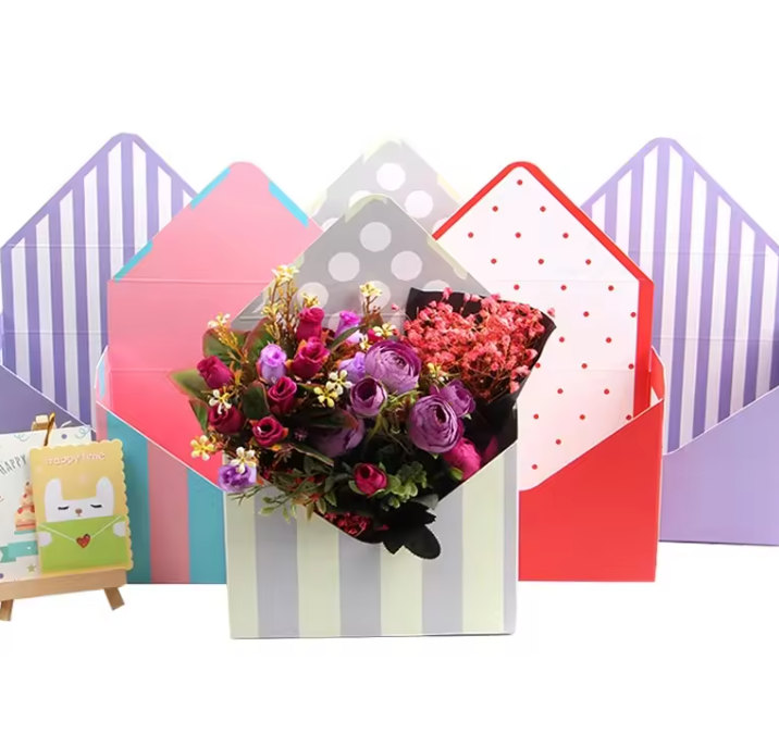 Customized ODM OEM cheap color packaging flower gift craft box envelope style origami flower box.