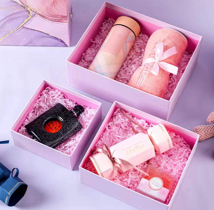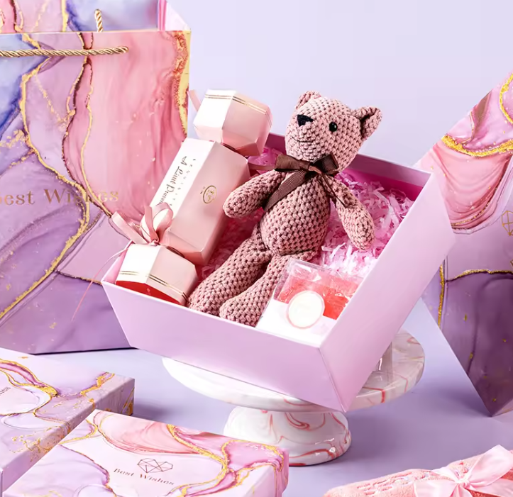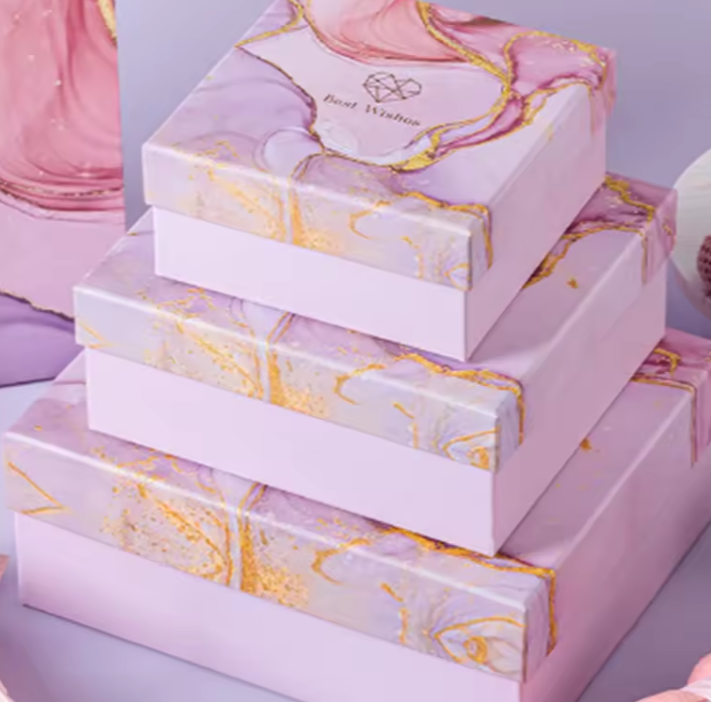Feature Highlights: This pink packaging box is made of recyclable cardboard and has various printing enhancement functions, such as matte lamination, glossy lamination, embossing, gold foil, and UV coating. It is very suitable for gift packaging and the design can be customized to meet different needs.