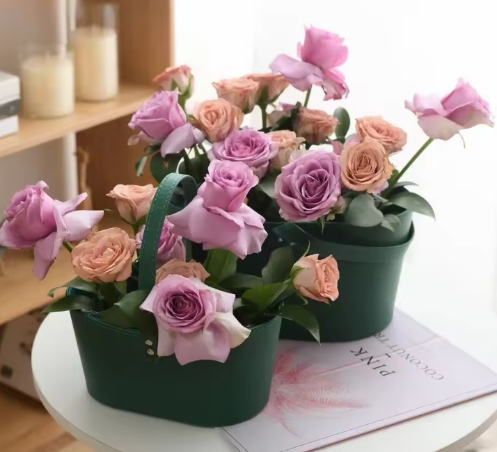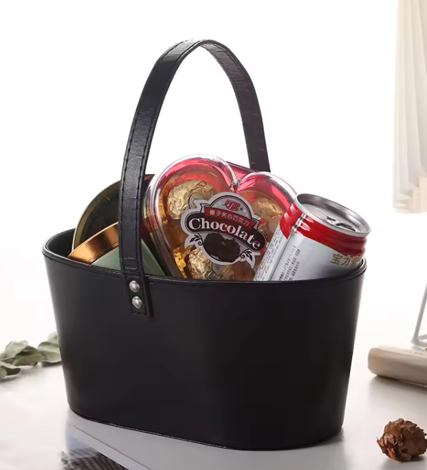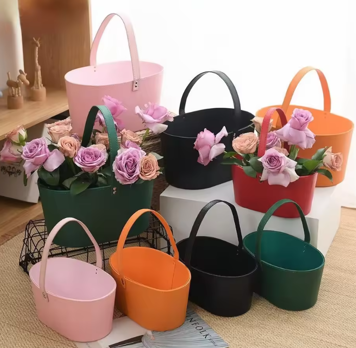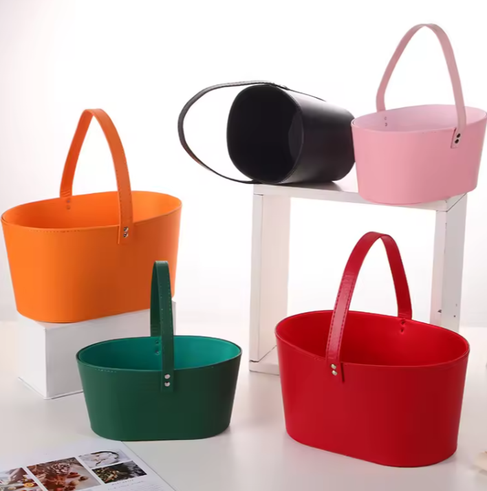 Orange Flower Basket Leather Handle Sustainable Mother’s Day Fruit Packaging Flower Organization Gift Box.