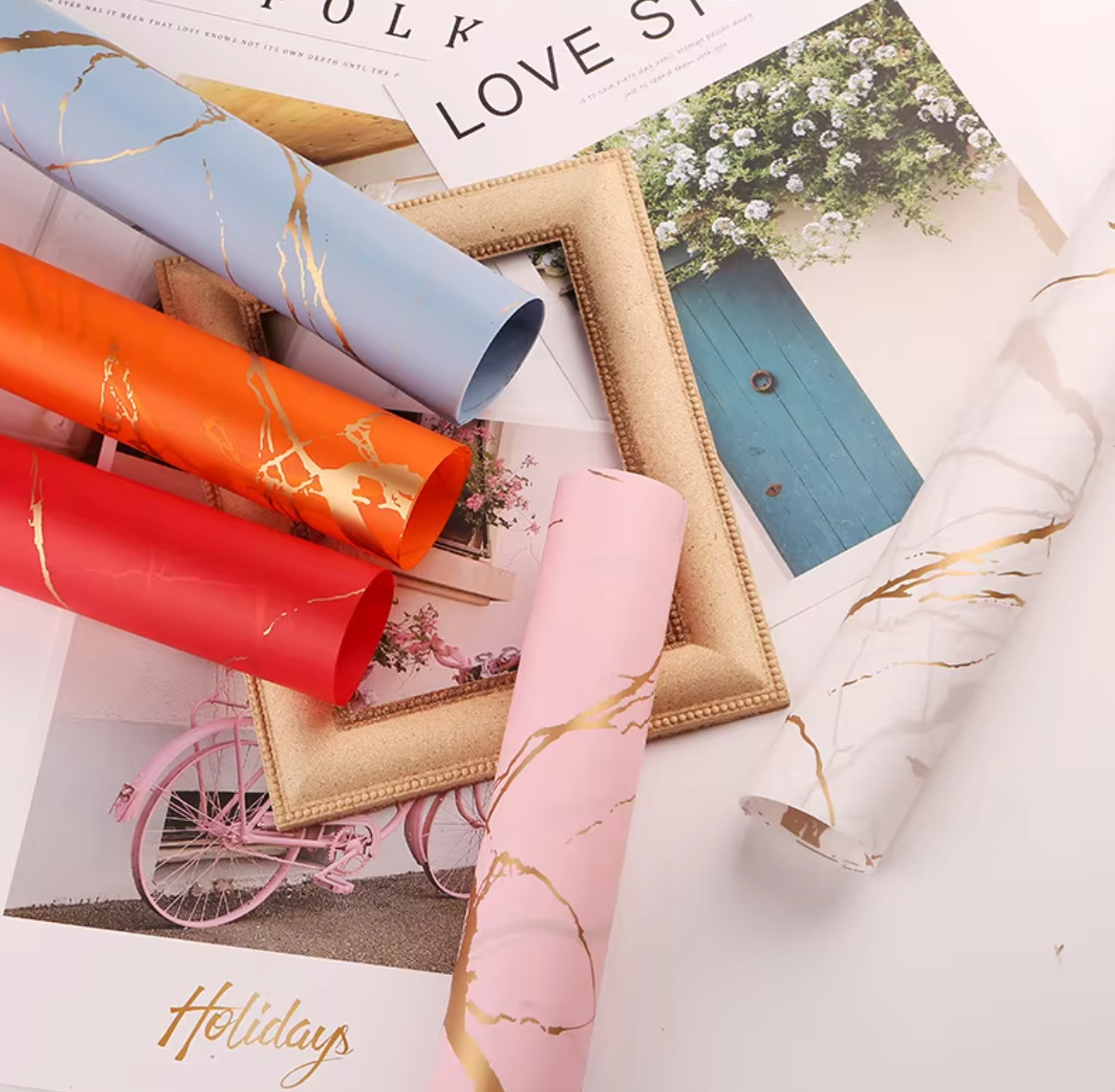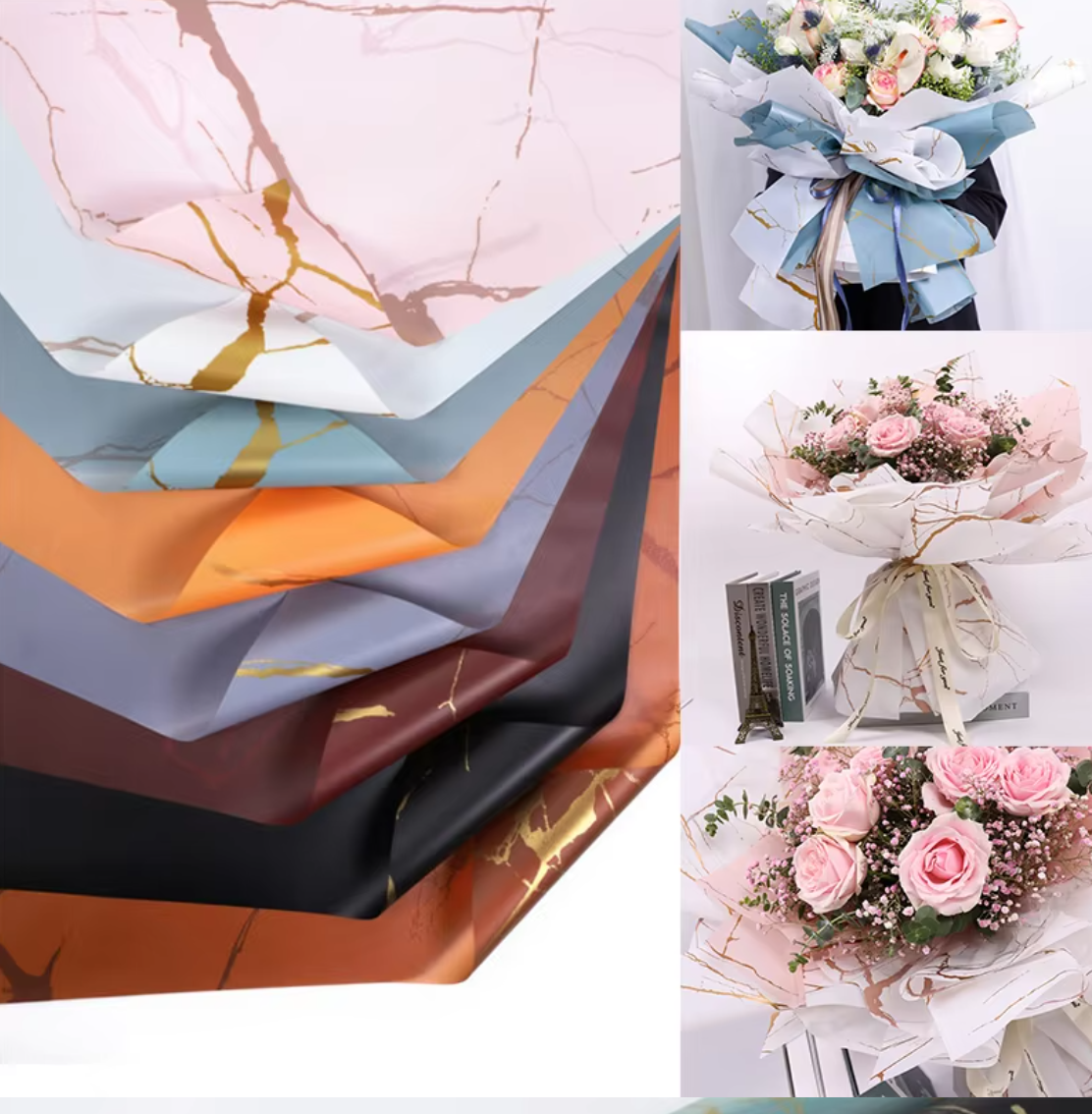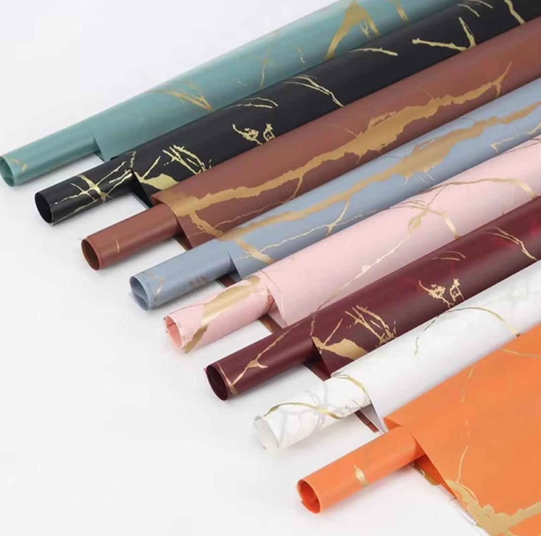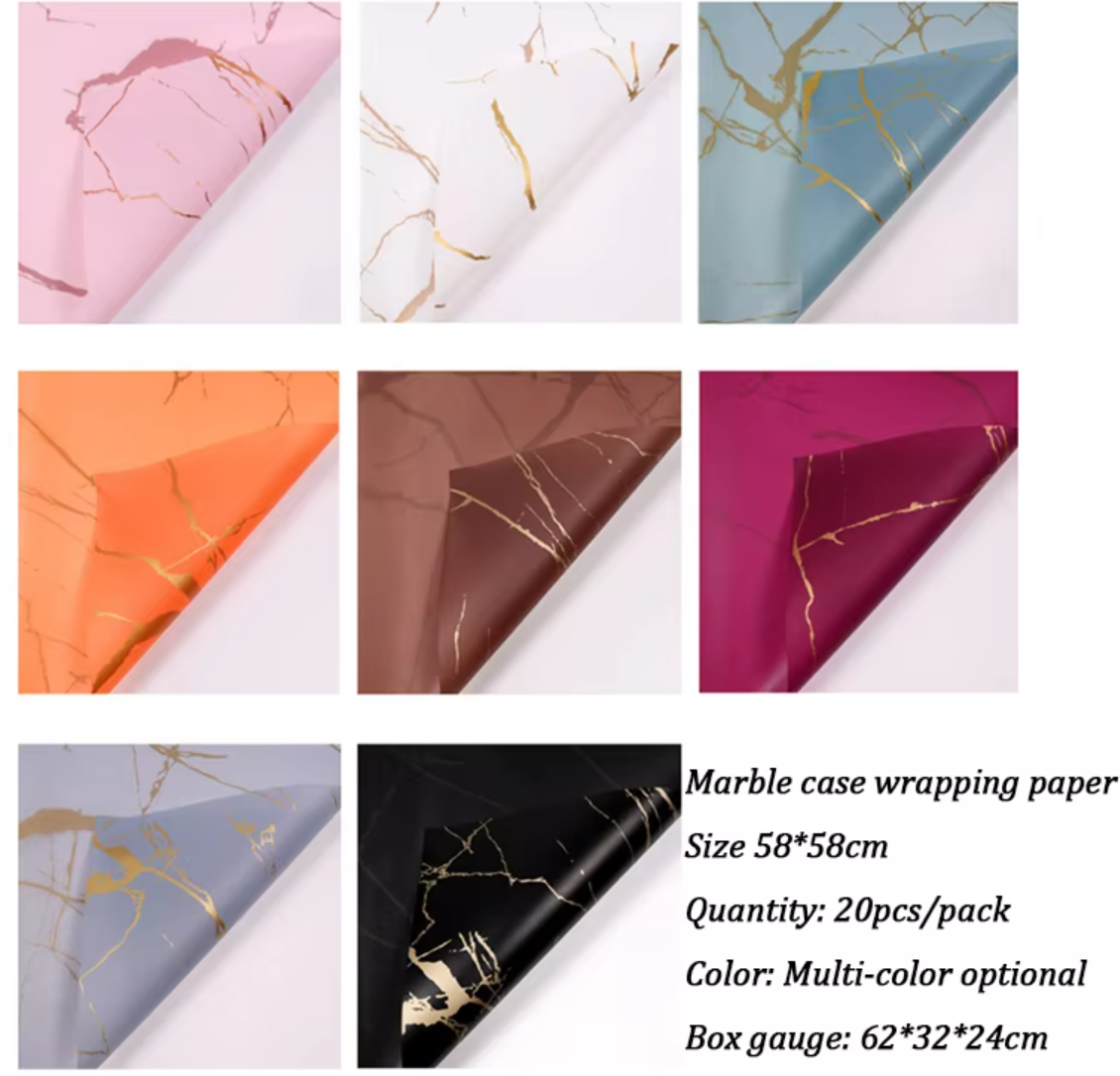 Feature highlight: This 58 * 58cm waterproof packaging paper is made of synthetic paper with marble texture, which is very suitable for flower gift packaging. It supports small batch procurement and customized printing services, ensuring diversity and convenience. The uncoated surface enhances its suitability for gravure printing, while the recyclable pulp material adds an environmentally friendly element.