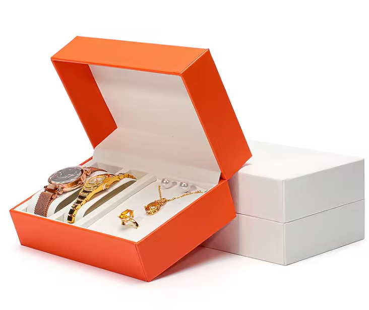 Feature Highlights: This customizable watch and jewelry box is made of recyclable cardboard and features a hard box design with glossy lamination, embossing, hot stamping, and UV coating. It supports custom sizes, shapes, and colors to meet the diverse packaging needs of gifts, watches, jewelry, and more. Tailored according to specific customer requirements, ensuring high-quality and flexible design solutions.