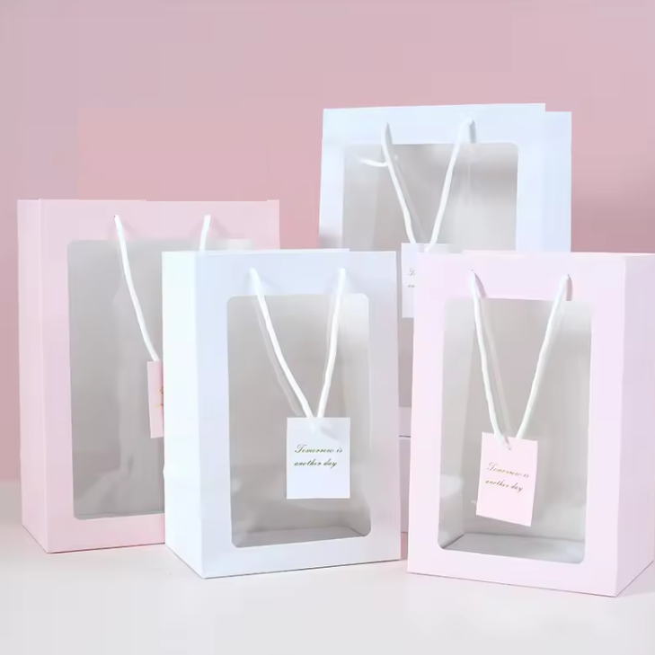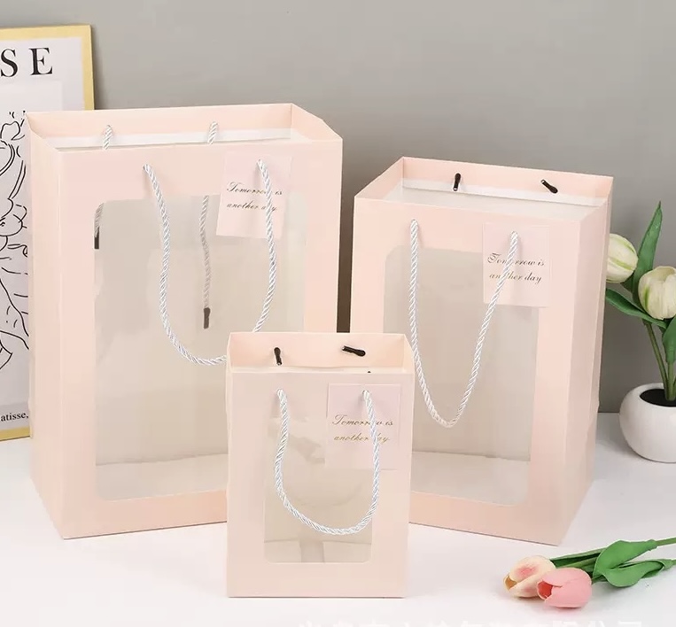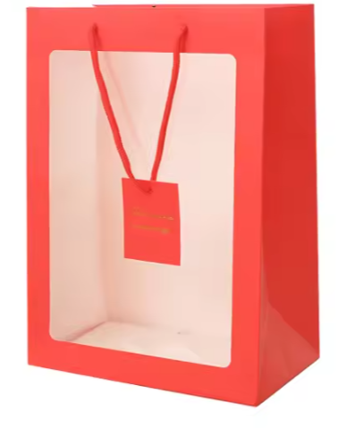 Plush toy clothing packaging paper bag craft paper bag transparent window paper bag. There are various sizes and the prices are different.
